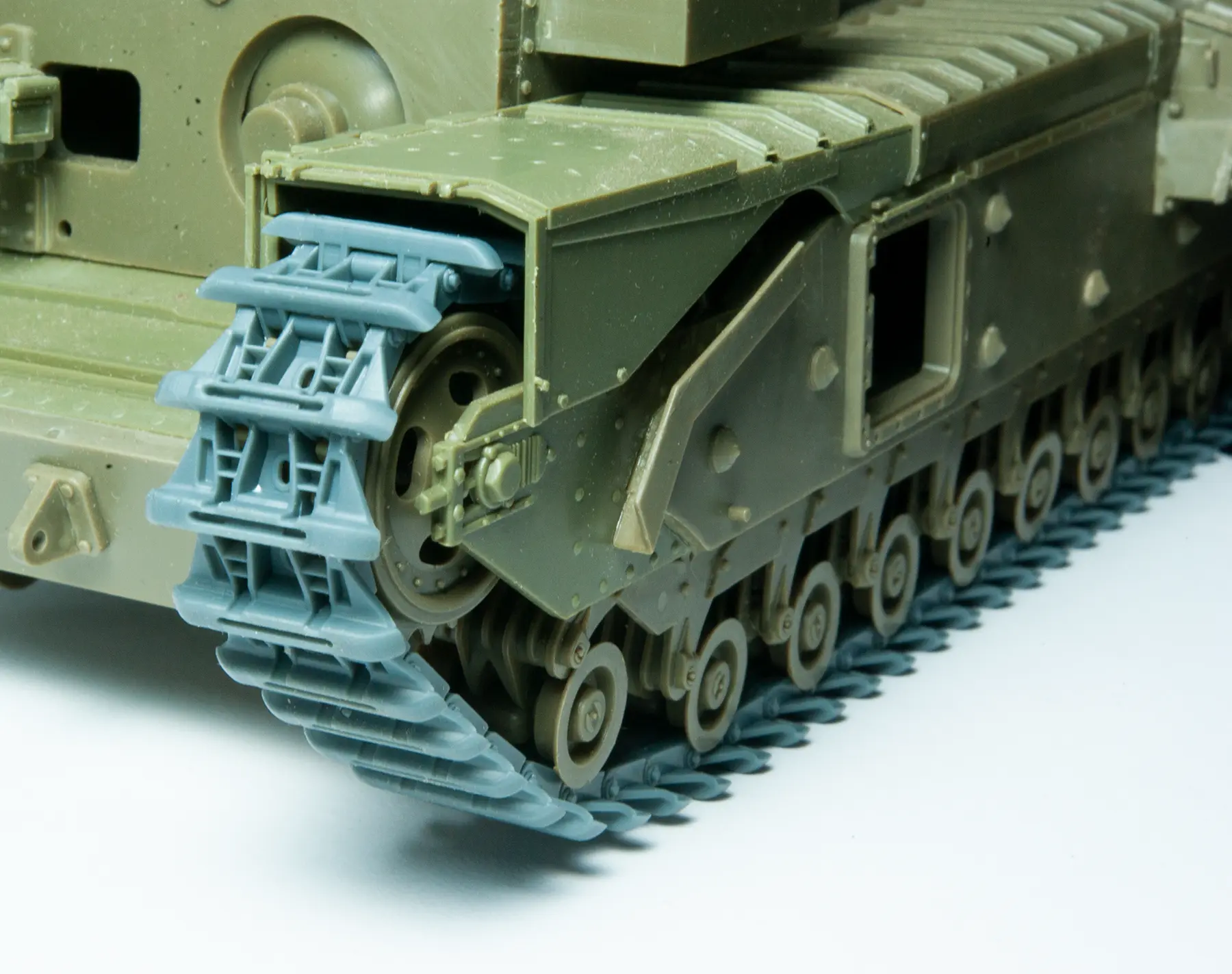 - The Churchill used very long tracks that wrapped almost entirely around the hull, unlike most tanks of its time.