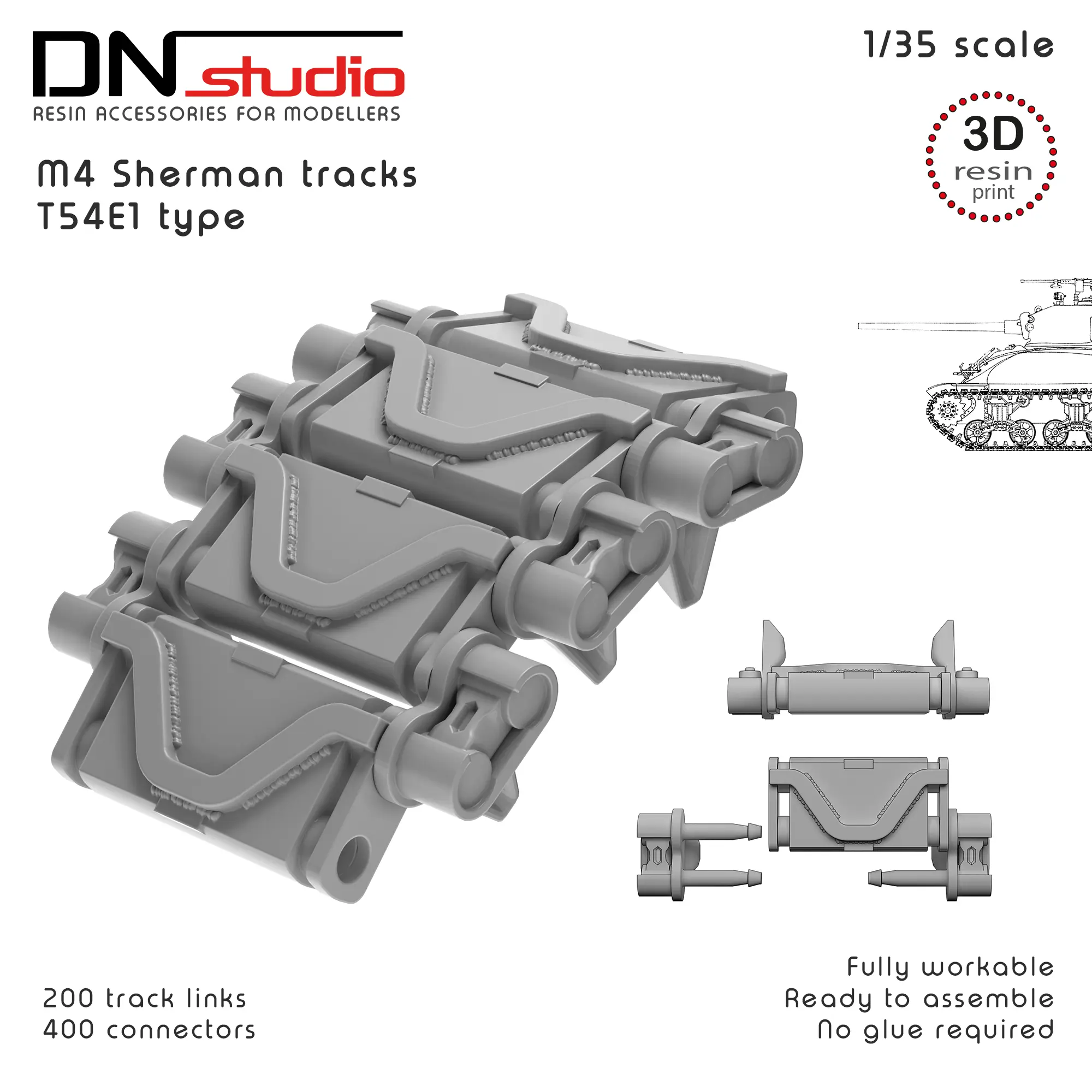 - 1/35 scale Sherman tank workable tracks T54E1 type