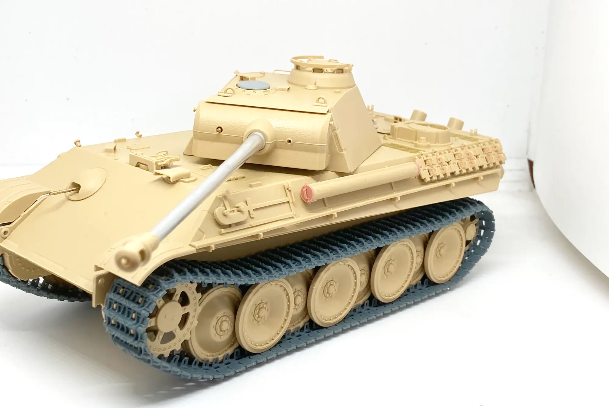 Late-war Panther tracks (mostly Ausf. G, mid-1944 onward) show a few telltale changes driven by cost-cutting and durability needs:
